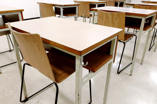 ■ 普通教室の生徒机にステンレス鋼製フック取付
