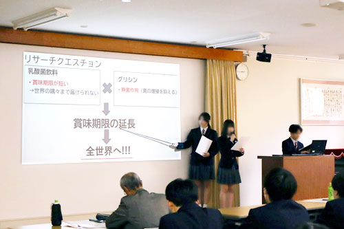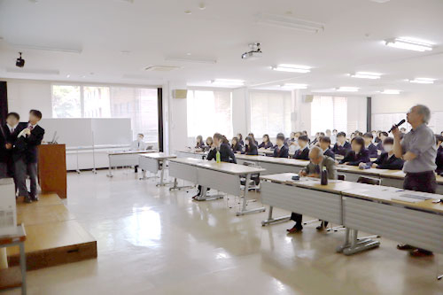 1月29日(木)、第2学年の生徒による「テーマスタディ」(総合的な探究の時間「ドクターロード」の一部)の全体研究発表会を行いました。1年近い調査・研究の集大成として班内で協力しながら、審査員である川崎医科大学・川崎医療福祉大学の先生方の前で発表しました。研究のプロセスに加え、発表後には大学の先生方からアドバイスやコメントをいただき、生徒にとって大学での医学研究を見据えた非常に良い経験になりました。