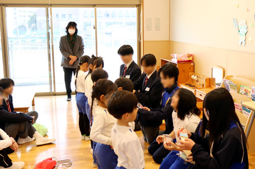 2月3日(火)に2回目のかわさきこども園実習を1・2年生の希望者で実施しました。6月の第1回実習を踏まえ、生徒一人ひとりがより子どもたちの目線に合わせて立つなど、工夫して積極的に関わろうとする姿が見られました。また今年度の家庭科で作成したおもちゃを使った活動では、子どもたちの反応を見ながら声かけや関わり方を工夫する様子が印象的でした。生徒たちは子どもとの距離が縮まることで、本当に楽しそうに子どもと関わっていました。