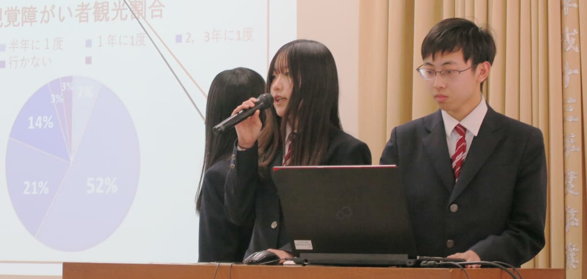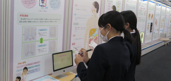 2年次に3〜4人のチームに分かれて、研究テーマを決め、調査や実験・観察を行い、発表します。医科大学の先生が審査員となり優秀なチームは表彰します。