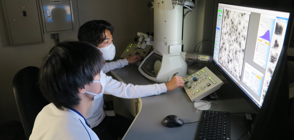 2年次に2〜3人のチームに分かれて、川崎医科大学の研究室で解剖学や生理学などの体験実習を行います。
