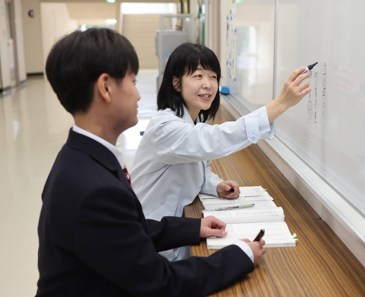 教員と生徒の距離が近く、授業時間外でも勉強のことはもちろん、さまざまな質問・相談を気軽にできる環境があります。疑問に感じたことを先延ばしにせず、すぐに解決できるので、効率よく学習に取り組むことができます。